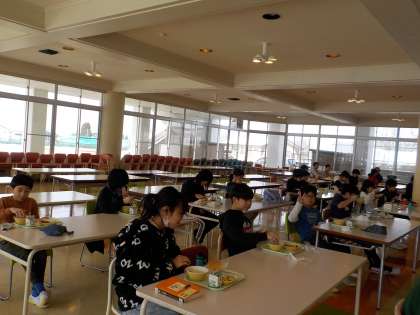 今週の給食から二人ずつのペアで座って食べています。少しずつ食事中の会話も楽しみながら給食を楽しむことができるといいなと思います。