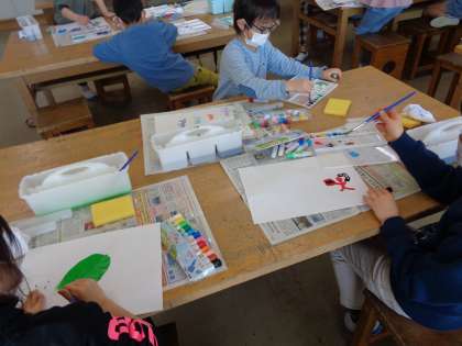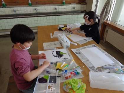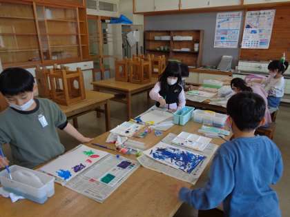 今日は水彩を使って、自分の思うままに自由に描きました。好きな絵を描いたり、特に何も考えずに色を塗ったりと、とても楽しそうな様子でした。
