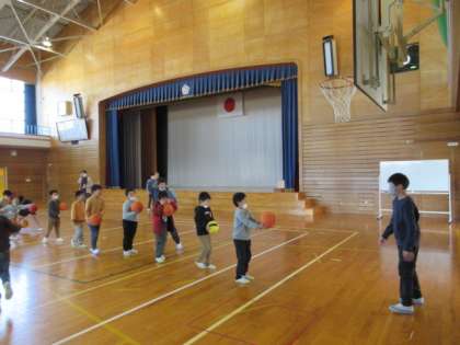 昼休み、運動委員会の企画でバスケシュートをしました。高いゴールに向かって、精一杯伸びてシュートを決めていました。「ナイスシュート!」の声に笑顔で応えていました。