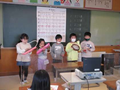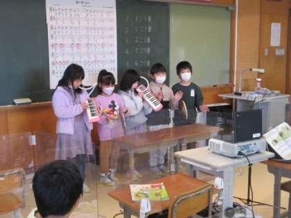 音楽の時間に「こいぬのマーチ」の合奏をしました。チームワークも良く、きれいな音を響かせていました。
