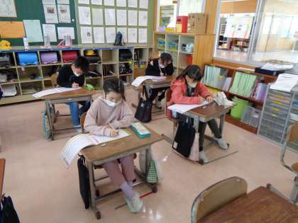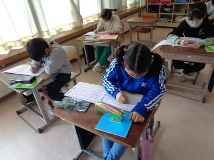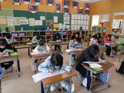 3年生もいよいよ終わりに近づいている中で、漢字のまとめの学習を行っています。学び残しのないように読み書き共に熱心に学習しています。