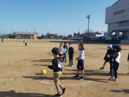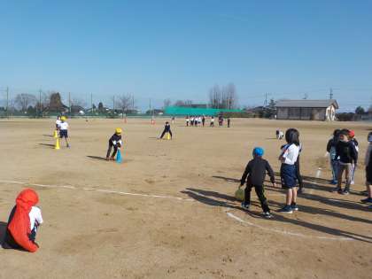昨日と今日の体育は天気がよく、グラウンドでキックベースボールを行いました。