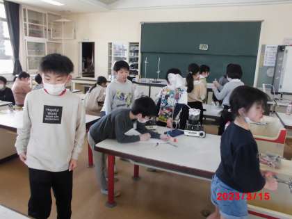 今年学習したものの中から、自分でさらに実験したいものを決め、グループで協力しながら徹底的に実験を行いました。前よりも詳しく行ったり、今回は成功するように気をつけることを増やしたり。自分たちで考えて、安全に実験を行っていました。