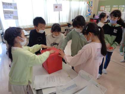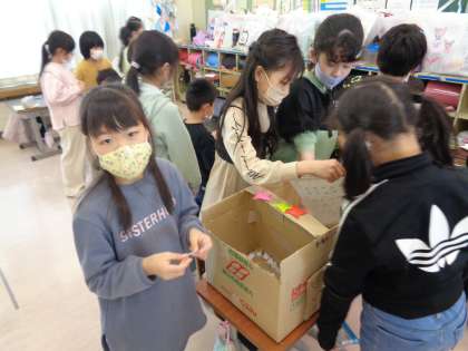 今日は3年生最後の集会でした。それぞれの会社が企画した音楽クイズや宝探し、くじ引きなどを楽しむ様子が見られました。「4年生になっても仲良くしていきましょう」という子供の声かけがありました。これからも楽しく学校生活をすごしていきましょう。