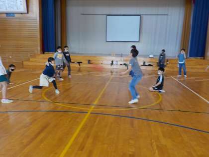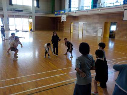 集会の後半は、体育館でリレー、だるまさんがころんだ、鬼ごっこ、ドッジボールをしました。盛りだくさんの集会でしたが、最後まで仲良く楽しむことができました。