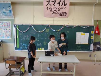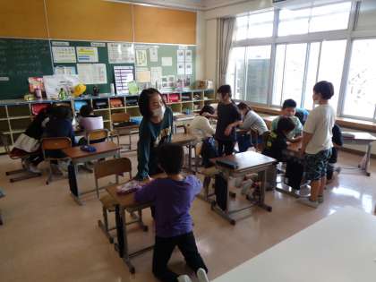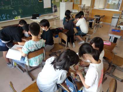教室に戻ってからは、イラスト大会を行いました。お題に合わせてチームごとにイラストをかきました。初めての活動にとまどう様子もみられましたが、係の人に協力して活動することができました。4年生になっても、クラスみんなで楽しい思い出をたくさんつくってください。
