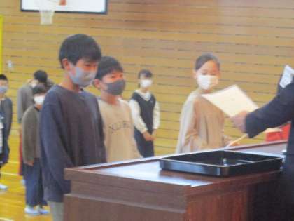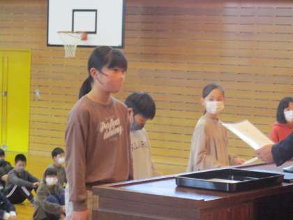 修了書授与の後、1・3・5年生の代表が、3学期のがんばりについて発表しました。