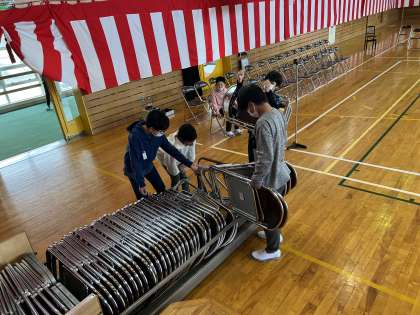 6年生で、入学式の会場設営や校内清掃を行いました。てきぱきと動く姿から、最高学年としての自覚が感じられます。