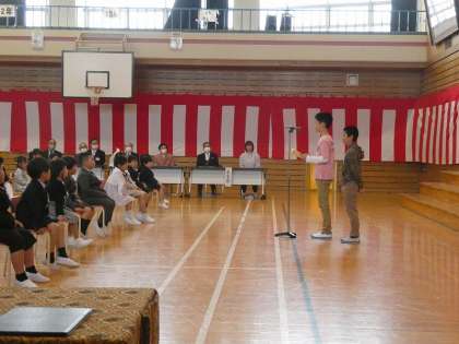 今日、6年生は入学式に参加しました。受付で名札やリボンを付けたり、新入生を案内したりと、がんばってそれぞれの役割を全うしていました。新入生に優しく声をかけるなど、先輩らしい姿も見られました。