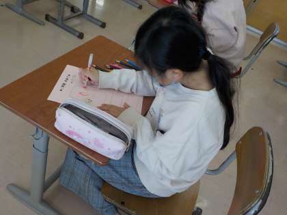 学級活動の時間に3年生の目当てカードを書きました。子供たちは「こんなことができるようになりたいな」と願いを込めていました。