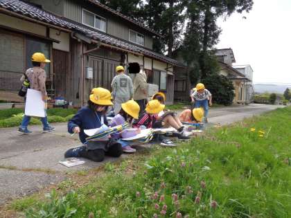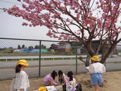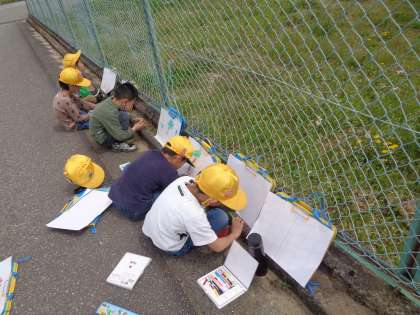今日の図工は、外で春を感じるものを見つけて絵を描きました。桜は散っていましたが、たんぽぽやヒメオドリコソウ、チューリップなど、春の花を見つけては、上手に絵を描いていました。てんとう虫やモンシロチョウなど、春の生き物も顔を出していました。