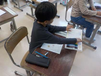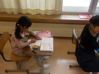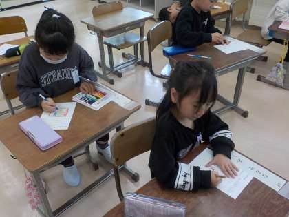 1年生は生活科で学校探検を行いました。子供たちは見付けたことや気になったことをイラストや文でワークシートにまとめました。