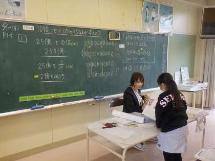 4年生は算数科で「ある数を10倍や十分の一にしたとき」の位取りの変化について学習しました。