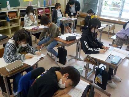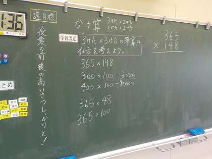 4年生は算数科で、3桁×3桁のかけ算の筆算について学習しました。