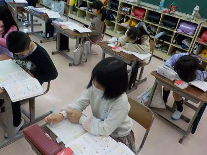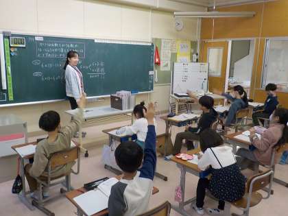 3年生はそれぞれのクラスでかけ算に関する問題を考えました。子供たちは、九九計算を活用して自分なりの答えを出していました。