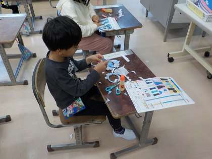 1年生は図工科で、はさみを使って様々な形を切り抜く活動に取り組みました。切り抜いた形をもとに想像を膨らませました。
