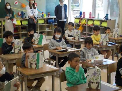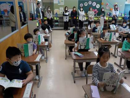 1年生は国語科で、うたにあわせて「あ・い・う・え・お」の学習を行いました。初めての学習参観で子供たちはうれしそうに学習をしていました。