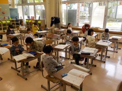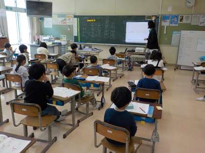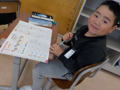 1年生は算数科で、「合わせていくつ?」の学習を行いました。ブロックを使いながら数の合成を学んでいます。