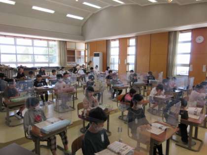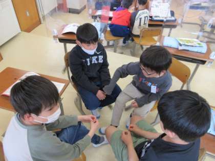 音楽の授業は1、2組合同です。合唱や鍵盤ハーモニカの演奏もボリュームのある音で気持ちも盛り上がります。クラスの垣根を越えて、楽しく取り組んでいます。