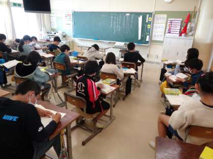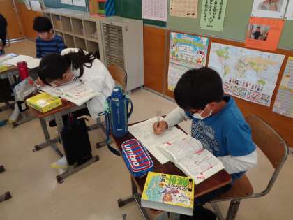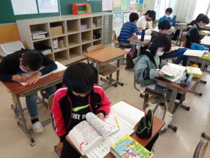 国語では、漢字の成り立ちについて学習しました。漢字辞典を使って、自分の名前に使われている漢字の成り立ちを調べたり、ノートにまとめたり集中して取り組むことができました。