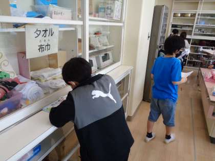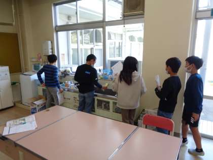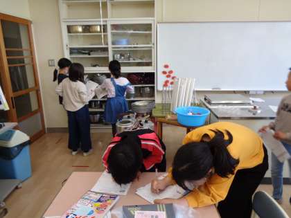 5年生から始まる家庭科の学習の様子です。今日は、家庭科室のどこに何があるかワークシートを使いながら確認しました。友達と教え合って場所を探す姿がすてきでした。