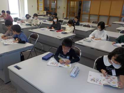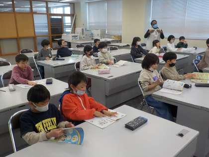 3年生は外国語活動の学習で、自己紹介をしたり、名前を書いたりする活動を行いました。