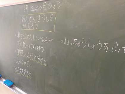 2年生は学級活動で、5月の生活目標(目当て)について考えました。子供たちは安全な生活をイメージしながら意見を出していました。