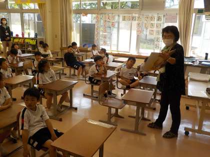 今年度初めての「お話の会の方々による読み聞かせ」がありました。子供たちはお話の世界に引き込まれていました。