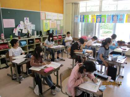 4年生は算数科で、割り算の筆算をしました。初めての挑戦でしたが、集中して問題に向き合っていました。
