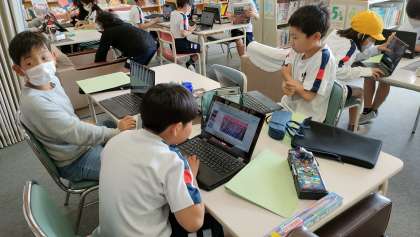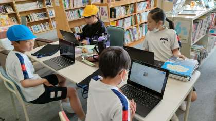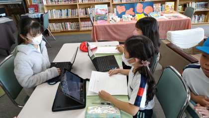 パソコンや本を使って、ごみ問題について調べています。