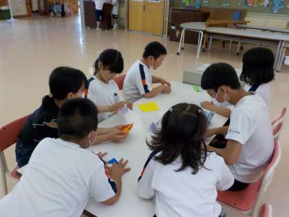 午前中は暑い中、外で過ごしたので、昼休みは屋内で過ごす子がいつもより多かったです。