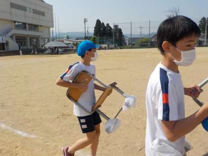 水曜日は、運動会の予行練習でした。「高学年としてできることを頑張ろう」ということで、係の仕事や行動を頑張りました。準備では、1年生や2年生の椅子を持ってあげて、助けてあげる素敵な姿が見られました。