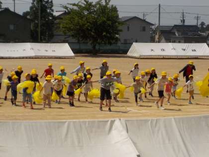 ほかの団の応援を見るのは初めてで、興味津々の様子で見ていました。