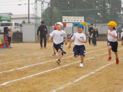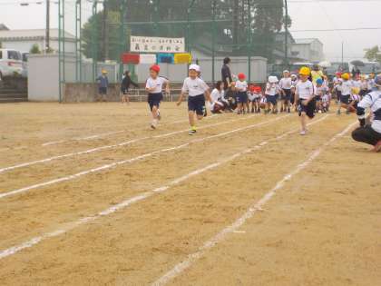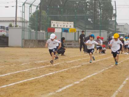 あいにくの小雨模様で、寒さも感じる中でしたが、1年生は負けずに一生懸命走りました。