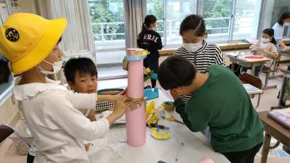 友達と協力して「ころころころがーれ」を作っている様子です。