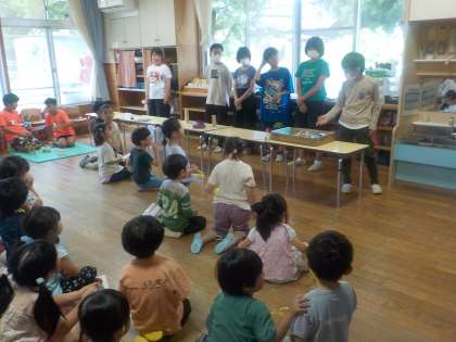 5年生の総合では、保育園児との交流を行っています。「心をつなぐにはどうしたらよいかな?」をテーマに、いろんな遊びを計画したり、遊ぶ物を作ったりして準備してきました。始めは緊張気味の子供達でしたが、だんだん打ち解けて、保育園の子供達が楽しそうにしていたのを喜んでいました。次は再来週に交流予定です。そこに向けてまた計画しましょう。