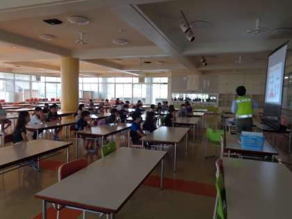 今日は土曜日に自転車教室があったことをふまえ、自転車の乗り方について市役所の方から大事なお話を聞きました。土曜日に学んだことや、今日新しく学んだことを活かし、最後の自転車の乗り方についてのテストでは、かなり理解している様子が見られました。