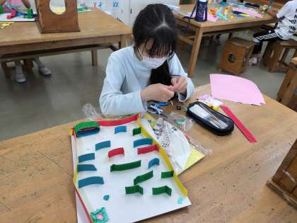 ビー玉が転がる道の周りにも、様々な工夫が見られます。