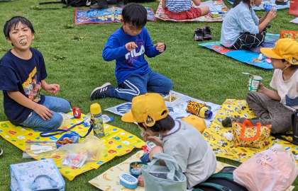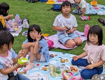 芝生広場でお弁当を食べました。美味しくいただきました。