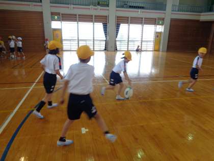 今日はタグラグビーをするための、パス練習をしました。団のみんなと協力して、楽しそうにパス練習をする姿が見られました。