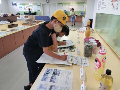 展示室にある物を、実際に見たり触ったりしながら、ごみが資源になることについての理解を深めました。