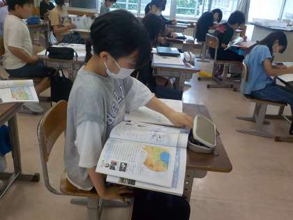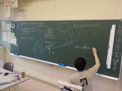 4年生は社会科で、生活で使った水道水のゆくえについて学習しました。汚れた水は、下水処理場できれいにされて川や海に戻されることや、水は循環して雨水となり、再利用されていることを学びました。