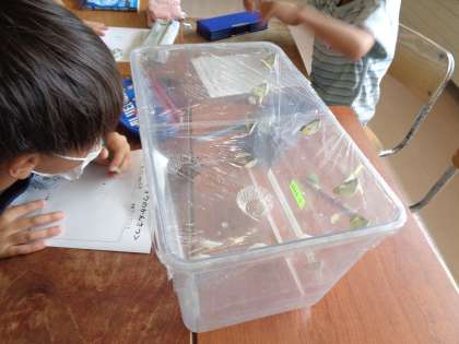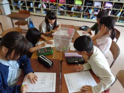土日の間にさなぎが全て成虫になっていて、子ども達は大喜びでした。観察をした後、合計23匹ものモンシロチョウを離しましたが、子ども達の中には、寂しい、とつぶやいている子もいました。でも、元気よく飛び立って行く様子に、嬉しそうな表情を浮かべていました。