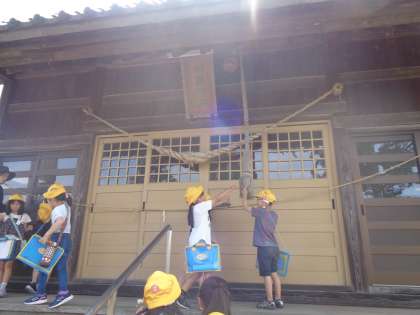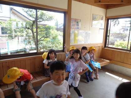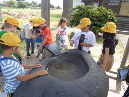 田畠神社では、いろいろな建物があり、神様にお祈りする素敵な場所だと気づきました。また、大庄駅では、休むことのできるベンチがあったり、たくさんの自転車が停められたりと、いろいろな人が利用することのできる工夫がされていることがわかりました。