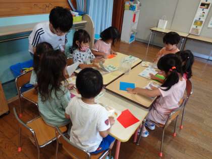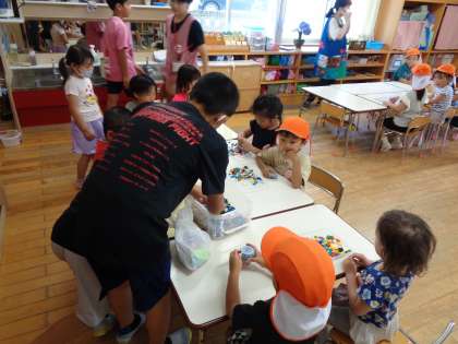 今日は、2回目の大庄保育園との交流学習でした。1回目を生かして、目線を合わせたり自分から話しかけたりすることを意識しながら保育園の子供たちと関わりました。ふりかえりでは、「名前で呼んでもらえた」「どの遊びも楽しんでもらえた」と、心の距離が縮まったようでした。