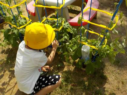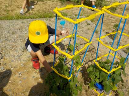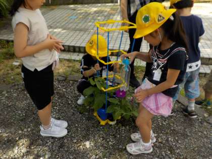 5月から心をこめてお世話をしていたあさがおの花が咲いたので、たとえ友達の花だとしても大喜びでした。