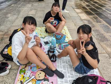 赤団はエコタウンの見学を終えて城址公園に到着しました。お弁当を 食べてゆっくりしています