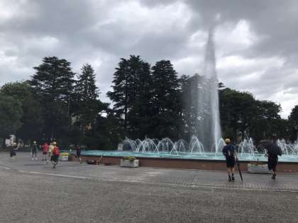 公共交通機関を乗り継いで、午後の活動に取り組んでいます。