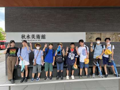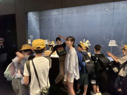 秋水美術館では、武士が使っていた日本刀や、鎧が展示されていました。妖しく光る日本刀に不思議な魅力を感じながら、子供達は口々に「かっこいい!」と興奮した様子で観覧していました。