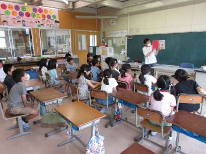 1学期最後のお話の会でした。「うそつきとどろぼうと正義の味方」「あなたがすき」を読んでもらいました。登場人物の心の揺れと自分の気持ちを重ねながら聴いていたのでしょうか。読んでいただいた後も静かな空気が流れていました。
